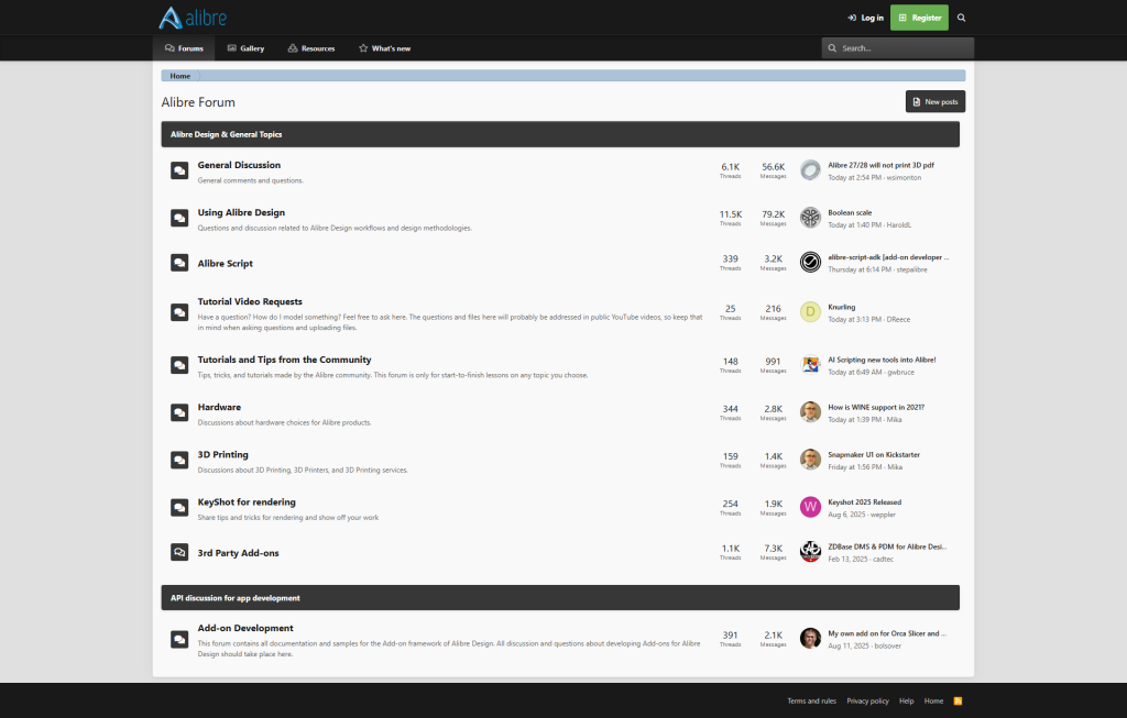 Aktiivsest arutelust ja postitamisest osa võtmiseks on vajalik registreerumine, milleks on tarvis foorumikoodi. See kood kuulub Alibre litsentsi juurde ja võimaldab liituda kasutajate võrgustikuga, kus jagatakse teadmisi, kogemusi ja tuge nii hobikasutajatele kui ka professionaalidele.